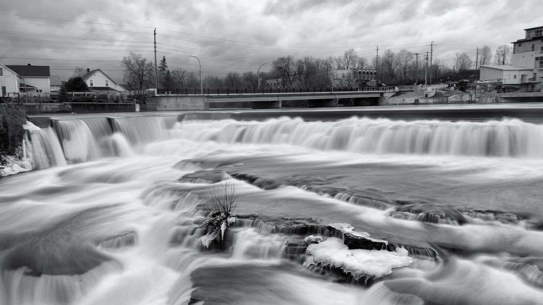 Frozen waterfalls in winter. Almonte, ON
